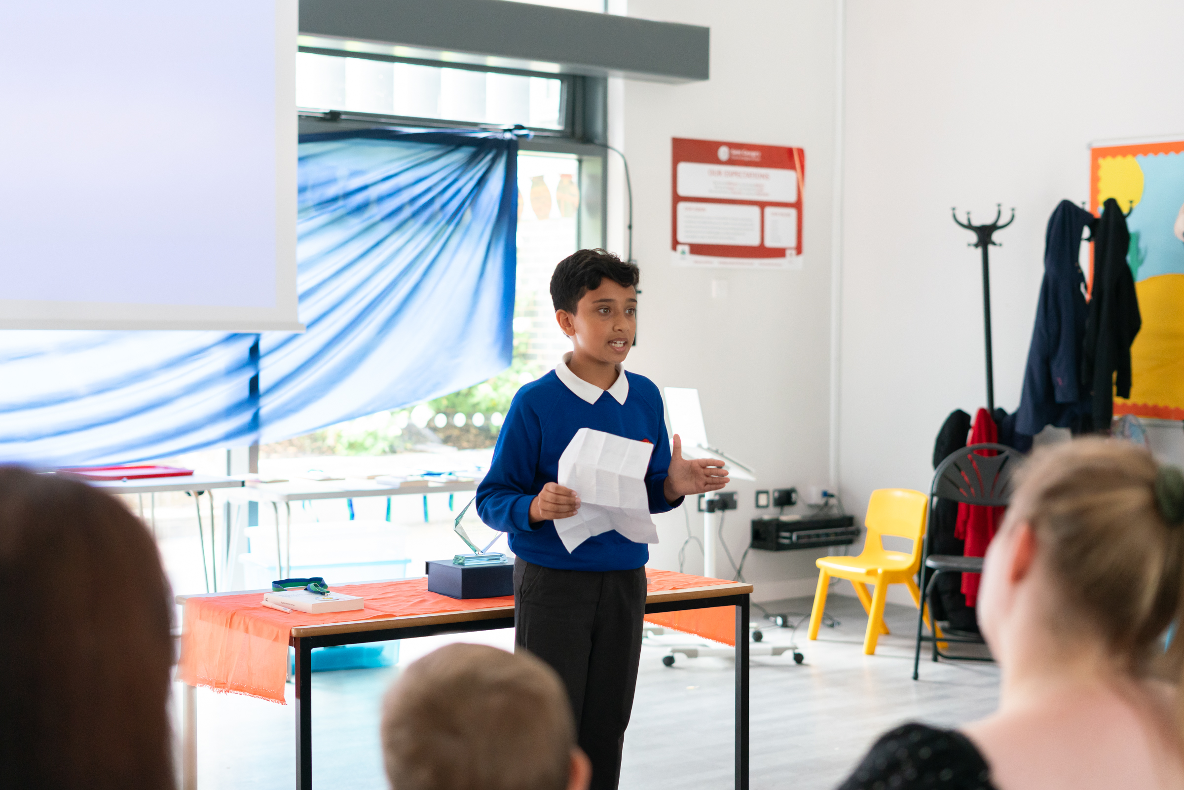 The panel of judges, Mr B Johnson (Trustee), Miss J Payne (Head of English at Saint George’s Secondary), and two head students from Saint George’s had the incredibly difficult task of choosing a winner. Every speech demonstrated outstanding preparation, courage, and voice.